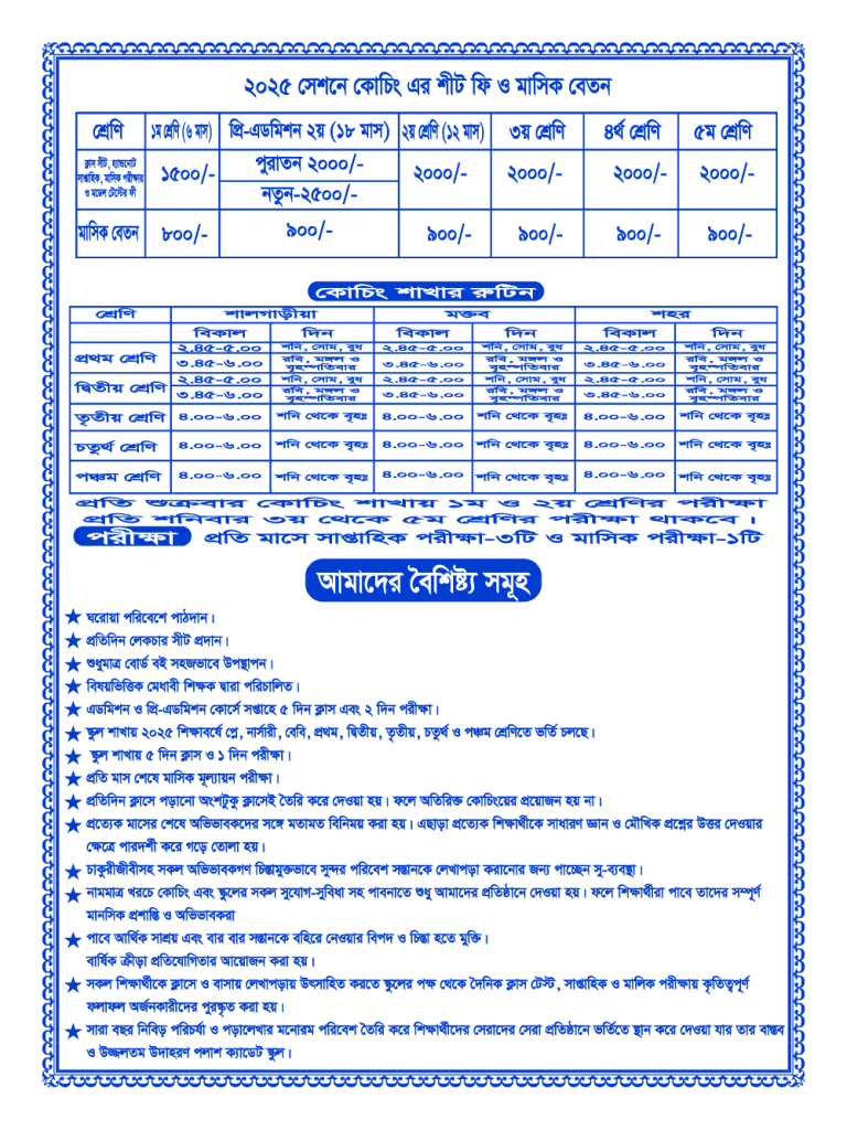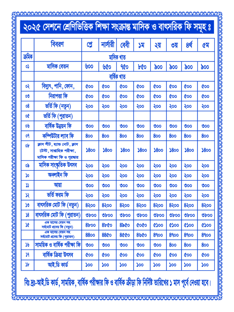 ২০২৫ সেশনে মাসিক ও বাৎসরিক ফি