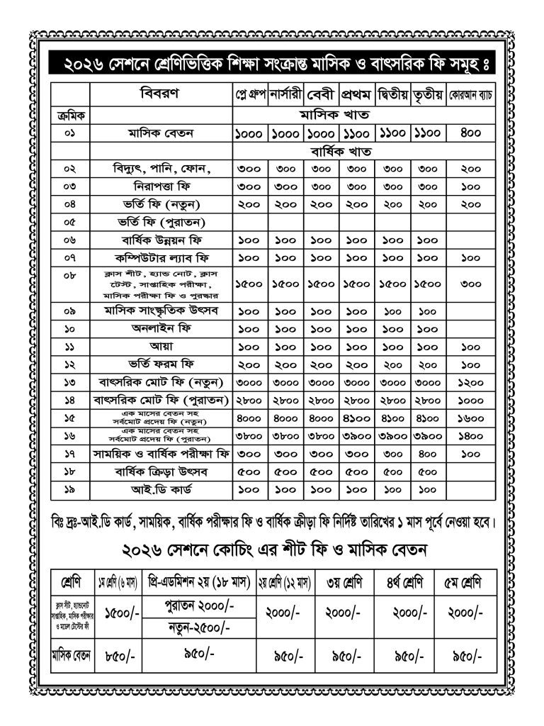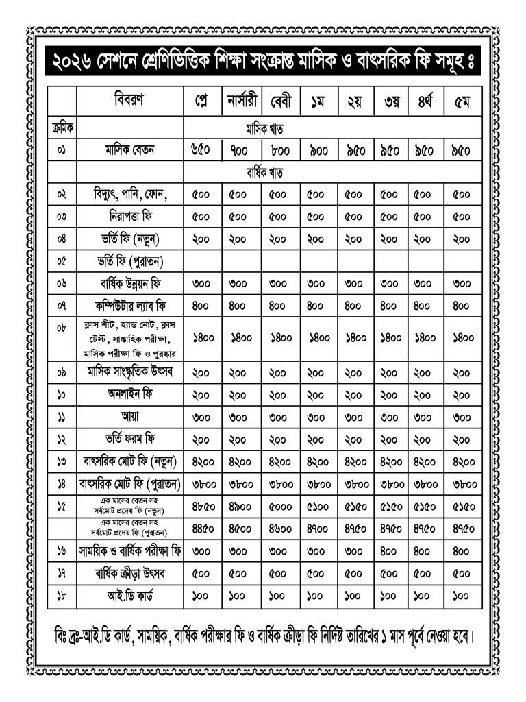 ২০২৬ সেশনে মাসিক ও বাৎসরিক ফি